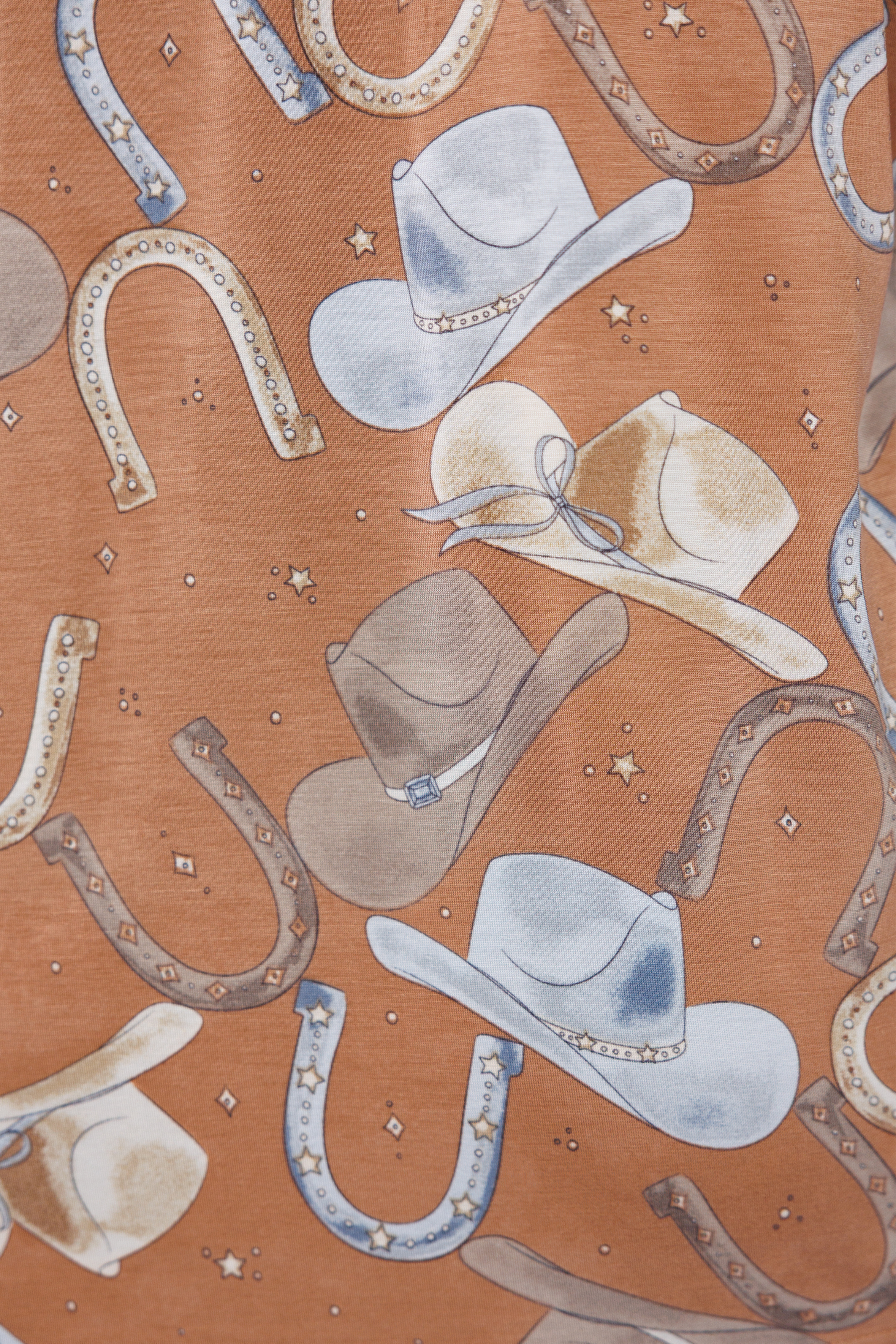 Hats & Horseshoes in Clay Long Sleeve & Cropped Pant Pajama Set