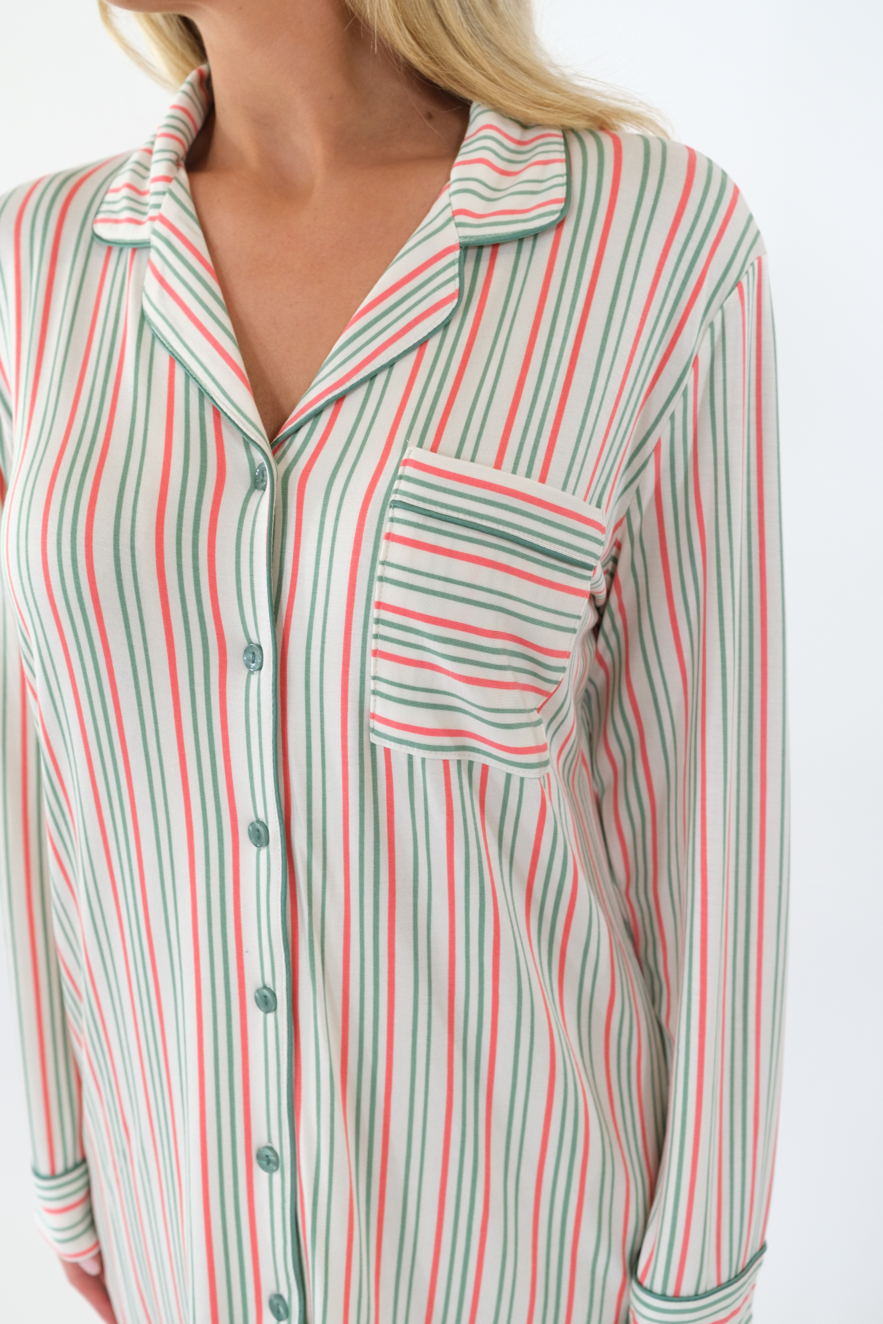 Get ready to slink into the Holiday Stripe Sleep Dress, the most luxurious sleepwear you'll ever wear. Made with the finest LENZING™ Modal fibers, these pajamas are so soft and buttery, you'll never want to take them off. The classic women's PJ silhouette is flattering and comfortable, while the stripe print adds a touch of southern sophistication.
